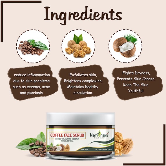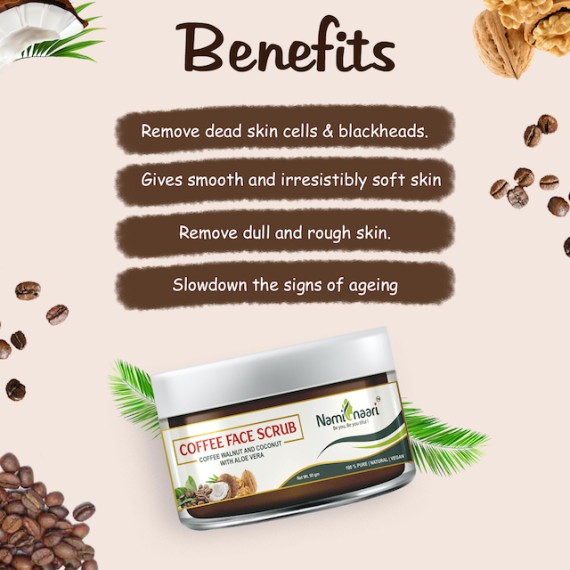 Naminaari chose coffee as the main ingredient for their face scrub for various reasons. In addition to being an excellent scrubbing agent, coffee ground has innumerable antioxidants and soothing properties that prove to be a boon for the skin. From removing dead skin cells to getting rid of puffy eyes, Naminaari Coffee Scrub can be your go-to natural skincare product for a healthy and radiant skin.