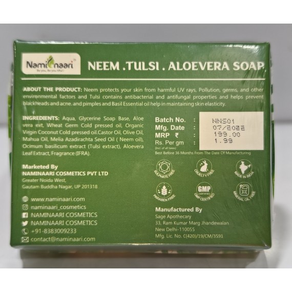 What happens when you combine three extraordinary gifts from nature into one single product? You experience extraordinary results! The vitamins and minerals of Neem oil, the anti viral and anti fungal contents of Tulsi leaves and the soothing anti microbial components of Aloe vera- together these three ingredients make Naminaari Neem-Tulsi-Aloe Vera soap one of the most powerful products.